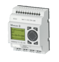 Eight inputs, four relay or transistor outputs. In all the DC versions, there is the option of two analog inputs. The easy500 has three contacts and one coil for circuit configuration in each of up to 41 lines of logic.